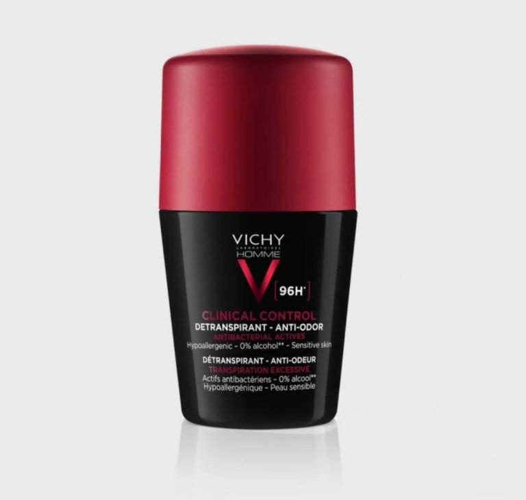 فيشي كلينكال كونترول 96H للرجال يمنح حماية قوية ضد التعرق والروائح لمدة 96 ساعة، مع إحساس دائم بالجفاف والانتعاش. تركيبته لطيفة على البشرة ولا تترك علامات بيضاء، مما يجعله مناسبًا للبشرة الحساسة وللرجال الذين يعانون من التعرق الشديد.