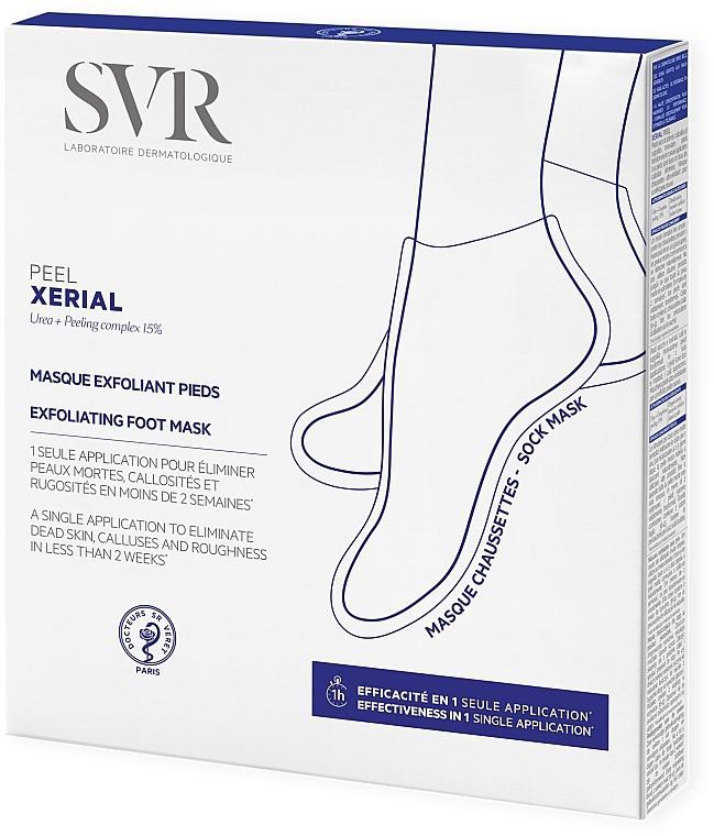 قناع تقشير للقدمين على شكل جوارب، مصمم لإزالة الجلد الميت والخلايا المتصلبة في تطبيق واحد.يحتوي على مركب تقشير مكثف مع 15% يوريا لتقشير وترطيب البشرة.