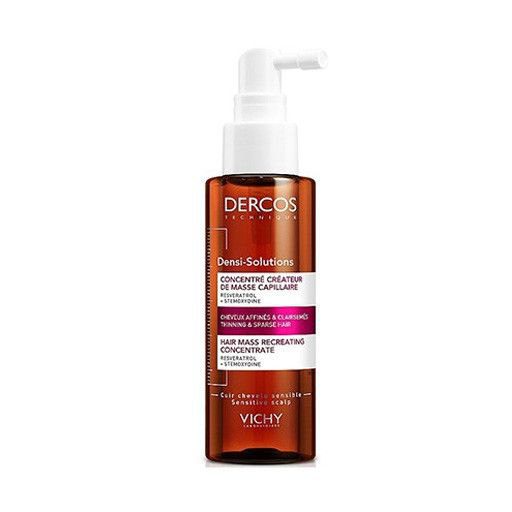 محلول معالج للشعر من مجموعة Dercos من ماركة فيتشي الفرنسية، تركيبة مركزة غنية بفيتامين E المضاد للأكسدة، سيتموكسيدين، الرامنوز (سكر نباتي طبيعي) ومياه فيتشي المعدنية يزيد من كثافة الشعر خلال 6 اسابيع ويقويه كما يعمل البيروكتون النشط على تهدئة فروة الرأس وتنظيفها كما يمنح الشعر اللمعان والمظهر الصحي.